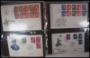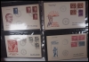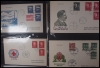 Ca 170 FDC 1955 till 1974, nästan alla med vinjetter, ca 400 postgångna småformatiga frankokuvert, några tusen äldre stämplade frimärken i pergamynkuvert och löst i askar etc. Mycket Stora tjänste och även en hel del Oscar och bandmärken. Även påse med något kilo klipp.