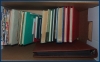 i 25 mindre insticksalbum. En hel del vackra stämplar och även många märken med nummer på baksidan. Även ett visiralbum med ca 500 rek- och ass-etiketter. Trevlig låda som kan vara värd en genomgång.