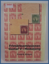 Utgiven av SFF som en minnesskrift vid de svenska frimärkenas 50-års jubileum. Inbunden med guldtryck i relief, 1905, 322 sidor. Mycket fräscht välbevarat exemplar i mörkblå färg med lätta avskavningar på ryggsluten.