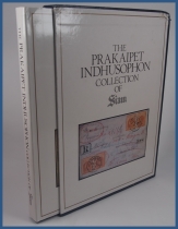 A selection of Thai stamps and related material from Pre-stamp period (ca 1835) to 1910. Inbunden bok med skyddsomslag i kraftig kassett. Utgiven 1989, 240 sidor i färg av en utställningssamling med beskrivande text på engelska. Fräscht skick, dock har kassetten fått två hörn intryckta. (1,5 kg)