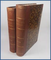Bägge med halvfransk inbindning och 415 respektive 503 sidor. 1920 års postfördrag genomfördes i Madrid och 1929 i London. Den tidigare boken med avskavningar på rygg och omslagets kanter. (3,5 kg)