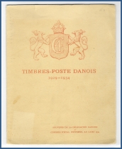 Danska Postverkets gåva på UPU Kongressen i Cairo 1934. Med inklistrade frimärksutgåvor 1929-1934 bla. cancermärkena, Chr. X Födelsedag, Luftpost 50 öre/1 kr, Böljelinjer/Karavell typ 1. Mindre revor och veck på omslaget.