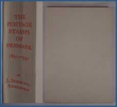 Det Danska Postväsendets 300-års jubileum utgiven av Kjobenhavns Philatelistklub, Privat halvfransk inbindning, 1925, 151 sidor. Handbok och specialkatalog över Danska frimärken under denna period. Avskavningar på omslagets skinnbeklädda del. Fräscht exemplar.