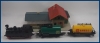 platta (ca: 2.20 m x 1.40 m). 3 ånglok, ett av dom är DA 800 (större) de andra 2 är små. 14 st Märklin vagnar varav 5 personvagnar, vidare 6 vagnar okända tillverkare, några troligen byggsatser. 6 skalenliga bilar 1 Wiking 5Herpa. Fint Märklin lokstall för 3 lok, 2 stationsbyggnader och en perrong. Massor av M-räls, 3 vagn avkopplare, 3 stoppbockar. 4 lådor med diverse reservdelar, lampor etc. Transformator, fjädrar för vagnar och gummifästen för att fästa räls på plattan. Ålder på anläggningen torde vara sent 1950-tal till slutet 1960-tal.