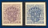 648. (A) 2 st otandade färgprover 15 öre lila samt blå
