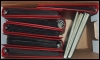 form av lösa märken, större enheter samt häften, allt monterat i 6 st röda 6-ringade visiralbum samt i två insticksböcker. Nominal drygt 31.300 kr.