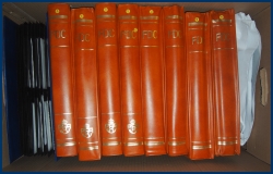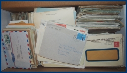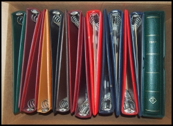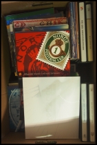 delen monterade i album. För de senare åren ligger FDC:na i kuvert. Även tjockt album maximikort fram till 2009. Lådan väger drygt 20 kg.