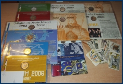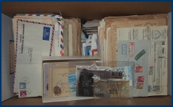 och på lösblad. Mest BRD, Berlin och DDR men även lite annat. Stor andel **/* inkl. större enheter, block (särskilt från DDR) och några häften. De flesta album välfyllda och ofta med många dubbletter, vilket även gäller blocken. Märken fram till ca år 2000. Lådan väger drygt 24 kg.