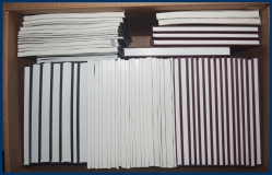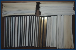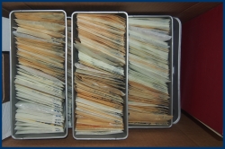i plastlådor fulla med pergamynkuvert i ordning efter Facit nummer.