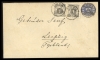 2x 4 öre Ringtyp t.13 sänt till Leipzig, Tyskland. Avstämplat "LUND 16.12.1884" med transit "MALMÖ 17.12.1884" på baksidan tillsammans med tysk transit 18/12.