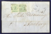 ursprungligt porto av 4x 3 Sk = 12 Skilling Banco till Danmark. Ett märke bortklippt med pappersförlust, det andra plundrat. Avstämplat med fyrkantsstämpel "HALMSTAD 6.4.1857". Transit "Kjobenhavn 6.4.1857" på baksidan. Avbildat i Bjäringer/Douglas bok "Sweden number one" Nr M-05 på sidan 192. Facit för 2 lösa märken: 100.000 kr.