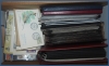 högvalörer: 3x Jaktfalk, 200 kr Svanar, 100 kr Bildsten, 100 kr Slottet. Även ** frimärken 1916-1942 inklusive 14 st BC/CB i 1 album. Resten av lådan innehåller mest modernt Norden med mycket från Färöarna, Danmark och Kanalöarna.