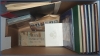 insticksalbum Sverige och hela världen - typ pojksamlingar. Lite vykort i ett kuvert, lite Europeiska mynt, Sverige dubletter i pergamynkuvert och häften i ett av insticksalbumen. Nominal 1970-80 tal i form av mest årssatser, drygt 2000 kr med rabattfrimärken inemellan.