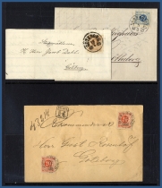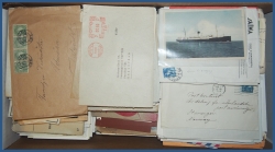 från Sverige, äldre-modernt. Bla Album med skeppspost, bunt äldre vykort, 100-tals brev med utvalda och prismärkta ortsstämplar.