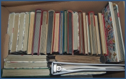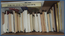 drygt 10 blad i varje album (fyllda med FDC). Högt anskaffningsvärde. Även diverse filatelistisk litteratur.