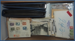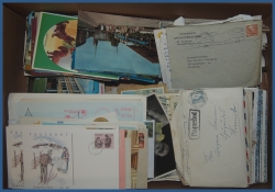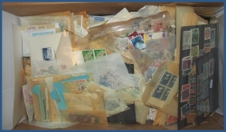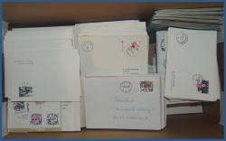 hela världen i lösa pergamynkuvert i välfylld flyttlåda. Speciellt mycket från Tyskland, Danmark, Holland, Italien, Norge, Indien, Österrike. Klassiskt-halvmodernt med massor att gå igenom. En låda som rekommenderas.