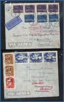 från samma korrespondens på 1930-talet inklusive 5 luftpostbrev till Argentina/Brasilien, frimärken hela världen i 5 album samt låda med löst blandat. Även sverige ** årssatser och presentsatser samt frimärken i 2 askar mest 1970-80 talet, Nominal ca 1800 kr.