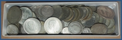 50 öre äldre (9 st), 50 öre nyare (12 st), 1 kr -1942 (3 st), 1 kr -1968 (19 st), 2 kr (5 st), 10 kr (1 st).