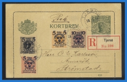 på 7 öres Kortbrev som 30 öre inrikes REK (2 öre överfrankerad). Mycket vacker försändelse avstämplad "TJÄRNÖ 23.12.19" som på REK-etiketten stavas "Tjernö".