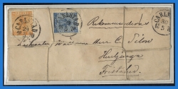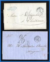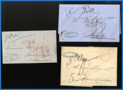 sända från Amsterdam respektive Rotterdam till Stockholm 1860 samt ytterligare ett brev från Amsterdam till Halmstad 1869 denna gång med notering "45 öre".