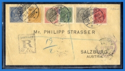 Österrike avstämplat "Reykjavik 12.2.1900". Rek-stämpel slagen i Danmark, samt transit "Registered Edinburgh FE 24 00" på baksidan med ankomststämpel "Salzburg 26/2".