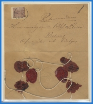 singel på snörat rekommenderat brevomslag till Bolnäs. Uppskuret för utställningsmontering.
