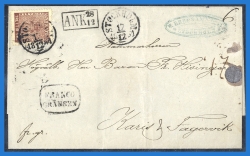 Avstämplat "STOCKHOLM 17.12.1861" och frankerat med 30 öre Vapentyp. Ankomststämplad "ANK 28/12".