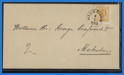 vackert blandfrankerat brev med innehåll avstämplat "STOCKHOLM C. 16.11.1880" sänt till Uddevalla. Intyg HOW (2001) Praktobjekt. Endast 2 brev kända med denna blandfrankering.