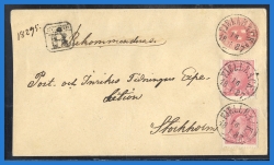 "FJELLBACKA 16.1.1887" på rekommenderad helsak till Stockholm. Vacker.