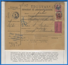 (16,66 kr) avstämplat "UDDEVALLA 28.11.1900". Paketetikett har saknats och istället har används en större rakstämpel (7 cm) "UDDEVALLA". Monterat på blad med beskrivning av portot.
