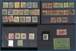 Samling i 3 olika album, börjar med stater på blad i klämalbum mycket märken och flera lite svårare, sedan Riket samlat mest ostämplat*/** utom inflaperioden som mest är stämplad, några få märken i samlingen är utan gummering (*). I denna pärm finns också några trevliga försändelser, till sist tidigt Bundes med flera av de bättre tidiga utgåvorna men framför allt lite försändelser och FDC med bättre värden upp till Michelvärde €200.