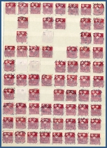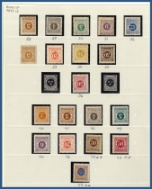 Finns flera riktigt svåra kombinationer. Samlingen i huvudsak postfrisk** dock finns lite stämplat och ostämplat*. Noggrann besiktning rekommenderas. En samling med mycket högt katalogvärde och som sällan bjuds ut.