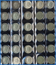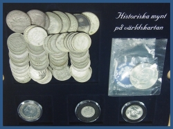 52 st "Historiska mynt på Världskartan" + 200 kr myntbrev Carl von Linné. De flesta av silver. Även några ordinarie svenska silvermynt: 1 kr -1968 (48 st), 2 kr -1940 (2 st) samt 2 kr -1966 (5 st).