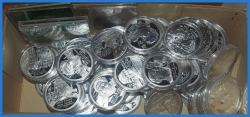 samt 14 st Silvermedaljer 99,9% silver Astrid Lindgren, även 2 st 100 kr minnesmynt och 1 st USA silverdollar 1971. Tillsammans en vikt av ca 2 kg.