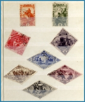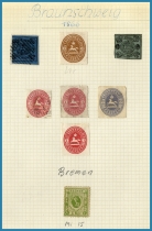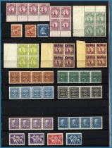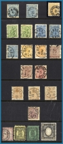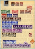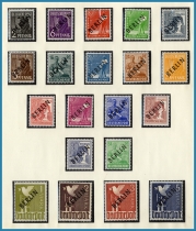 några få i slutet. Monterad i 3 tjocka album, tillkommer 2 visiralbum med massor av stämplade märken. Tjänstemärken ingår ej.