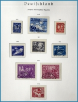 Omfattande samling övervägande **. Sovjet zonen 1945-49 är samlad både stämplat och ostämplat */**. DDR är komplett fram till 1990 troligen allt **, tjänstemärken är ej kompletta. Insticksböckerna innehåller stämplade frimärken. Sammanfattningsvis enormt mycket material. En samling som rekommenderas.