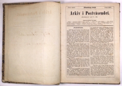 Postverkets förvaltning. 11 årgångar trådhäftade 1865-1874 inkl "Föregående år" (1866) i nutida hårdbunden kassett (ateljé b). Godtagbart skick (1866), övriga gott skick. (Est. SEK 1,000).