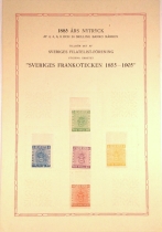 1855-1905. Skinnband med helt guldsnitt. Godtagbart skick. (Est. EK 5,000). Notera: Lyxupplaga med 1885 års nytryck av skilling banco-märkena (position 2, fastsatta enbart i arkmarginalen). Inbunden i en samtida volym 323+1 sid. Nutida hårdbunden kassett (ateljé b). Proveniens: Exlibris Claes Olrog; Ex. Frimärkshuset Skandinavisk Filateli AB #121 2006 lot 153 SEK 4,700 + 20%.
