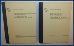 des Bureaux de Poste, Volume A-G, H-O, E-Z, förord i separat häfte. 3 inbundna volymer, UPU:s originalband, förord häftat. 48+2101 sid. Nyskick. (Est. SEK 1,000).