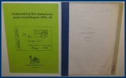 svenska post- och makuleringsstämplar 1855-1937 samt Handbok över svenska tillfällighetsstämplar 1866-1942. 167+96 sid. Mycket gott skick. (Est. SEK 1,000). Notera: Lyxupplagor, skinnband med helt guldsnitt. Handboken 1866-1942 nummer 1 (upplaga 10). Proveniens: Dedikationer i båda till generaldirektör Anders Örne.