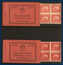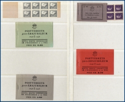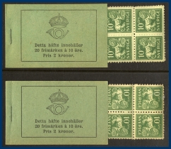 häften förekommer i ett flertal exemplar, ofta med enkla eller dubbla markeringar. De flesta av häftena sitter monterade i 8 st PFA häftesalbum medan övriga häften ligger löst i en kartong. Nominal drygt 25.800 kr. I de åtta albumen ingår ofta även stämplade häften, inte sällan vackert stämplade med en lyxstämpel på varje enskilt märke/par.