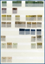 med tandningsvarianter, feltryck, nyanser etc prydligt indelat och beskrivet med FDC inemellan. Även visiralbum med **/* dubbletter, häftesblock och arkdelar.