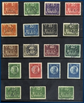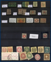 antal album och på instickskort etc. i en cigarrlåda. Mängder med bättre märken och block och även mycket "mellanmaterial" med hyggliga katalogvärden. Bland de riktigt tidiga märkena är det endast Mi 7 II som har äkthetsintyg, för övriga märken är det upp till var och en att göra sin egen bedömning. Se gärna de många bilderna på vår hemsida.