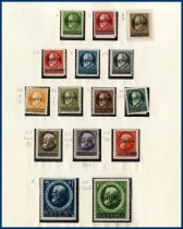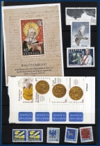 är **/*. Samlingen börjar dock med ett stämplat ex av Mi 32 Napoleon (Mi €1000 men märket har en vikt hörntand och i samband med det ett minimalt riss). Därefter följer en mängd bättre märken från 1910- till 1930-talet, ofta **. Från 1920-talet och framåt i det närmaste komplett. Bland de bättre märkena kan nämnas ett fint ** exemplar av luftpostmärket Mi 321 (€1100) samt PEXIP-blocket, som dock har fastsättarrester högst upp. Även starkt BOB-avsnitt med lösenmärken etc. Här är många av märkena stämplade. Utöver huvudsamlingen medföljer även en låda med märken på instickskort, visirblad och i kuvert. Även här finns en hel del bättre material. I lådan ligger också två blad Belgien samt ett svenskt ** Greta Garbo souvenirark. Se gärna de många bilderna på vår hemsida.