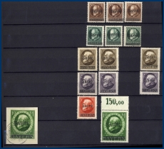 samlingar i totalt 7 album. Börjar med nr 1+2 med 5 k bläckmakulerad och 10 k med låg fyrkantsstämpel, Bra klassisk del med bl a 25 st stortandade märken samt 2 x 10 Mark etc.