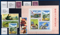 några lösa insticksblad. Bättre frimärken har setts inemellan från klassiskt fram till 1980-tal. Mycket att gå igenom. 5 F Napoleon ser visuellt mycket bra ut men har ett minimalt riss och veck, på PE-PIX blocket är märkena ** (Mi. €320 för lösa märken) men i blockmarginalen fläckar i gummeringen och ett nålstick. Sammanfattningsvis går det att få ihop en bra samling av materialet i lådan. Tillkommer även bunt försändelser, en liten samling från Napoleonkriget mot Ryssland på kort samt en Yvert frimärkskatalog.