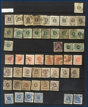 större avsnitt datumstämplar Oscar II, mycket bandmärken, Lösen t.14-13, Stora Tjänste t.14-13 (inkl. några försändelser). Blandad kvalitet.