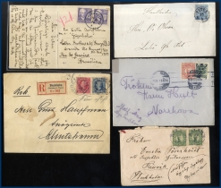 Äldre-modernt, bl a flera till Mellanöstern returnerade pga krig med etiketter och stämplar.