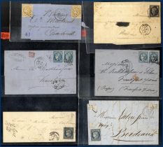 (varav 1 till Reval) 1848-1866. Många olika stämplar, Porto- och Lösenanteckningar etc. Alla prismärkta och i plastfickor. Ex. Göran Fredrikson.
