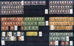 Allt i 4 insticksalbum, 2 VISIR pärmar, 4 lagermappar och ett förtrycksalbum 1873-1994 där man kan fortsätta sätta in frimärken från lagret och få en bra samling. Mest stämplat material men ostämplat och postfriskt förekommer. Mycket högt katalogvärde, lågt utrop.